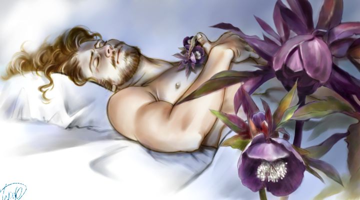 人物との組み合わせを色々迷っているうちに、手向けの花になってしまいました。