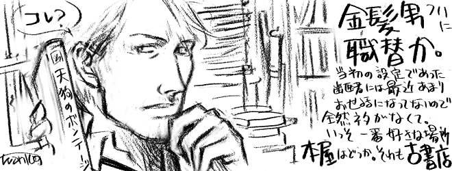 攻略日記「猫伝」もなんとか終結を見ました。 居間で乱雑になっていた本とビデオの整理する。 現在の寝本は、諸星大二郎と山本貴嗣の旧作がほとんど、廊下の本棚から物色してるうちに20冊以上溜まってしまった。 ビデオはサッカーばっかり。映画はよほど気に入ったのでないと残さなくなった。昔はけっこうなんでも録っておいたけどさすがにもう情熱が。 今のメジャーな映画で2度見たいのって少なくなったなー。あ、テレンス・スタンプの「私家版」はもう一度見たいです。なぜかと言うと深夜衛星でやってて、その日は朝の2時か3時からサッカー中継があったんで、途中からあきらめたのでした。活版本作りのところなんか、もう一度ちゃんと見ておきたい。 ←落書きは金髪男転職のクダリ。 「天狗のボンテージ」は「栞と紙魚子の生首事件」の86ページにある本です。(笑)ホントにあるなら読んでみたい。 きょうのばんごはん・鶏唐揚げ・サラダ、味噌汁、麦御飯 |