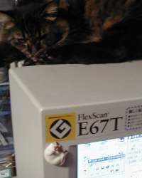 私のモニタ上部にはレリーフ状の猫の飾りが貼ってあるんですが、