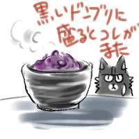 色は黒っぽい紫というか濃い小豆色になってたので、食べた感じは薄い塩味の汁粉。(笑)